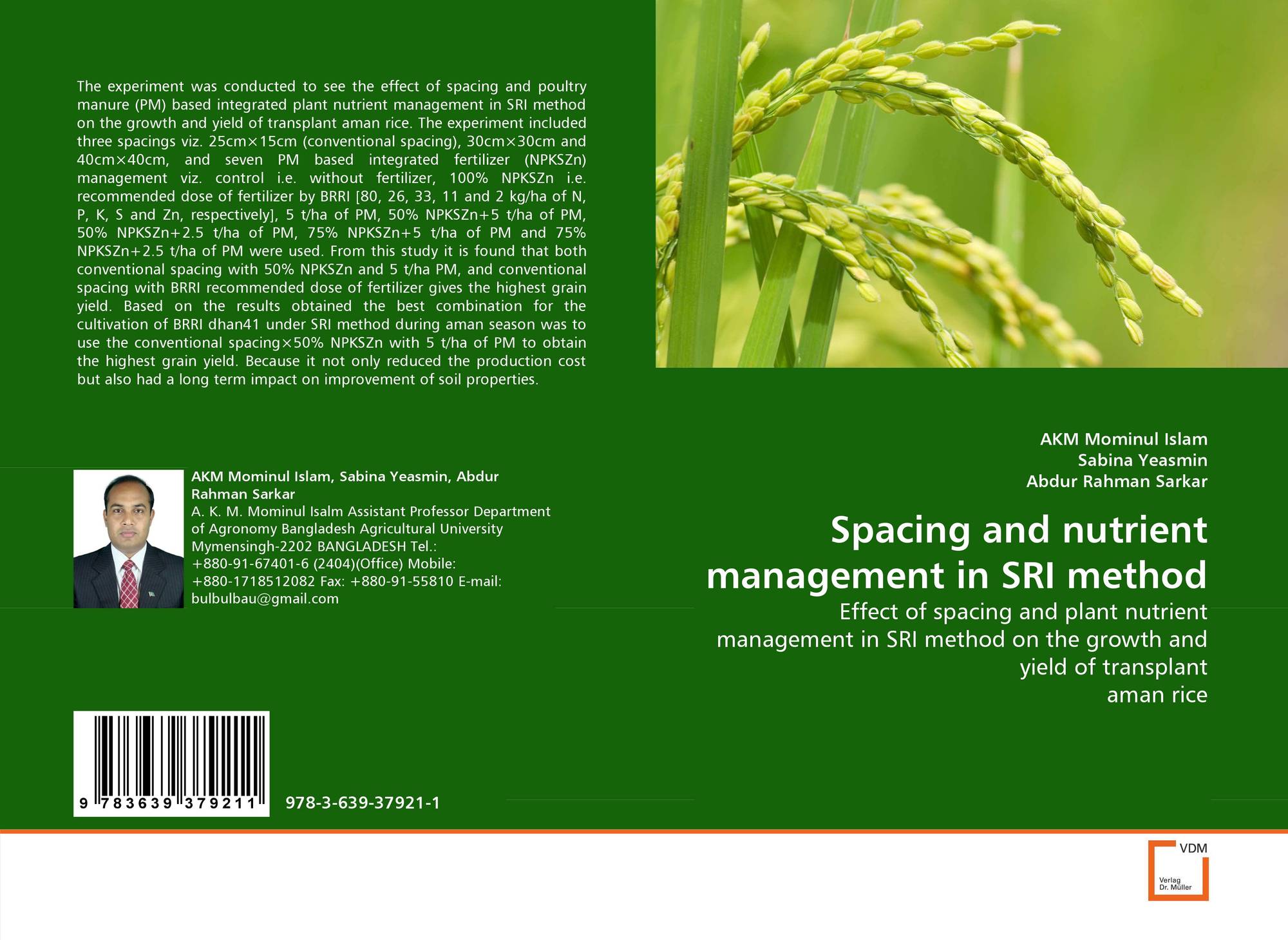 Effect of spacing and plant nutrient management in SRI method on the growth and yield of transplant aman rice