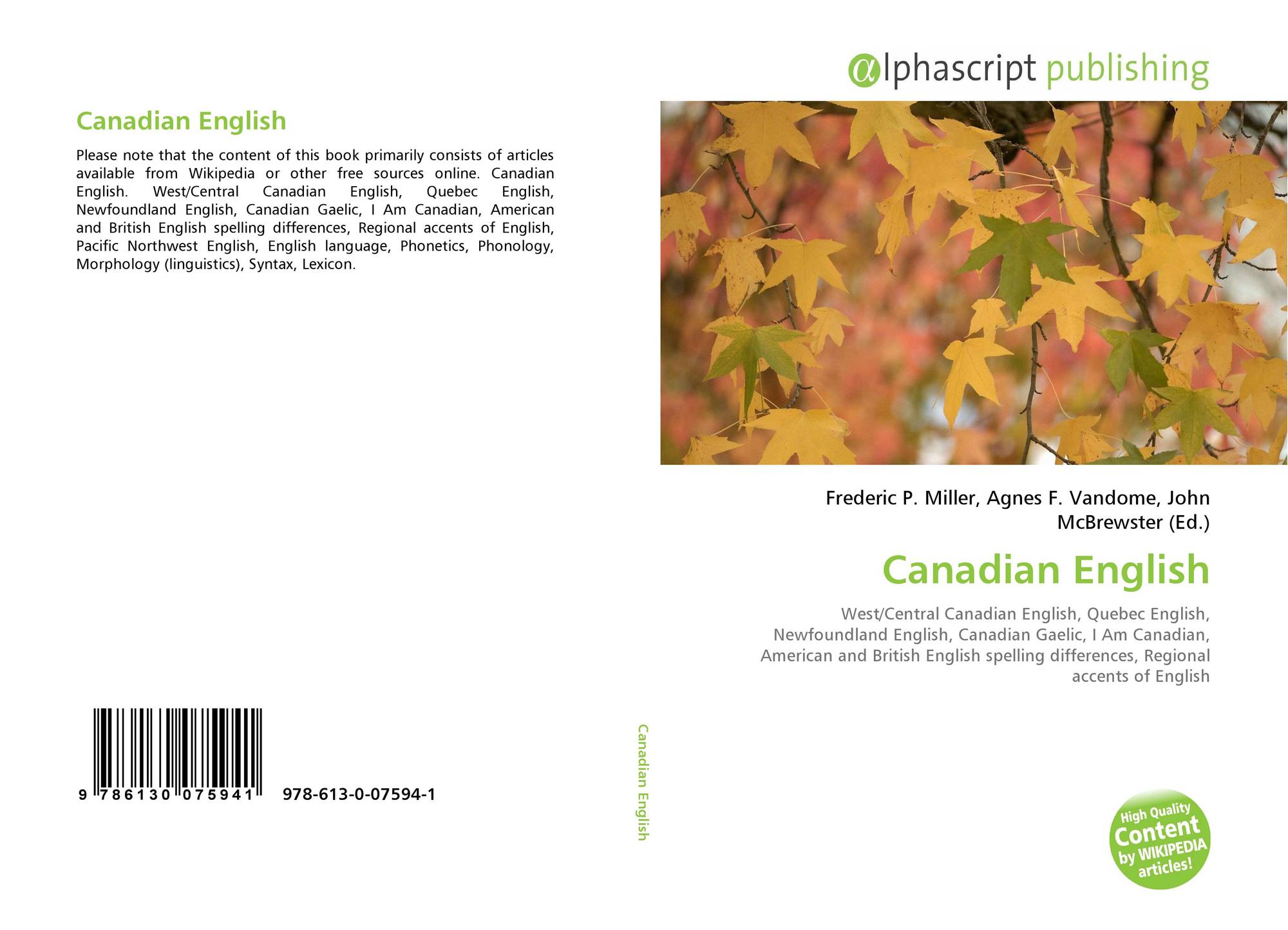 Alphascript Publishing (2011-07-25) - ISBN- 1 3: 978-613-0-07594-1
