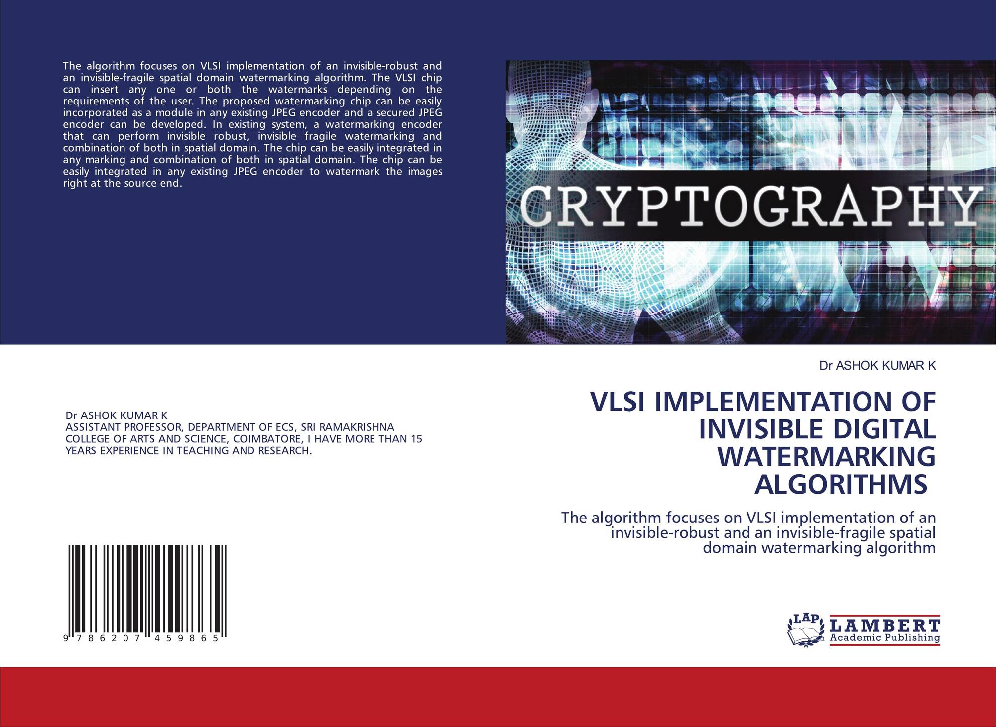 The algorithm focuses on VLSI implementation of an invisible-robust and an invisible-fragile spatial domain watermarking algorithm