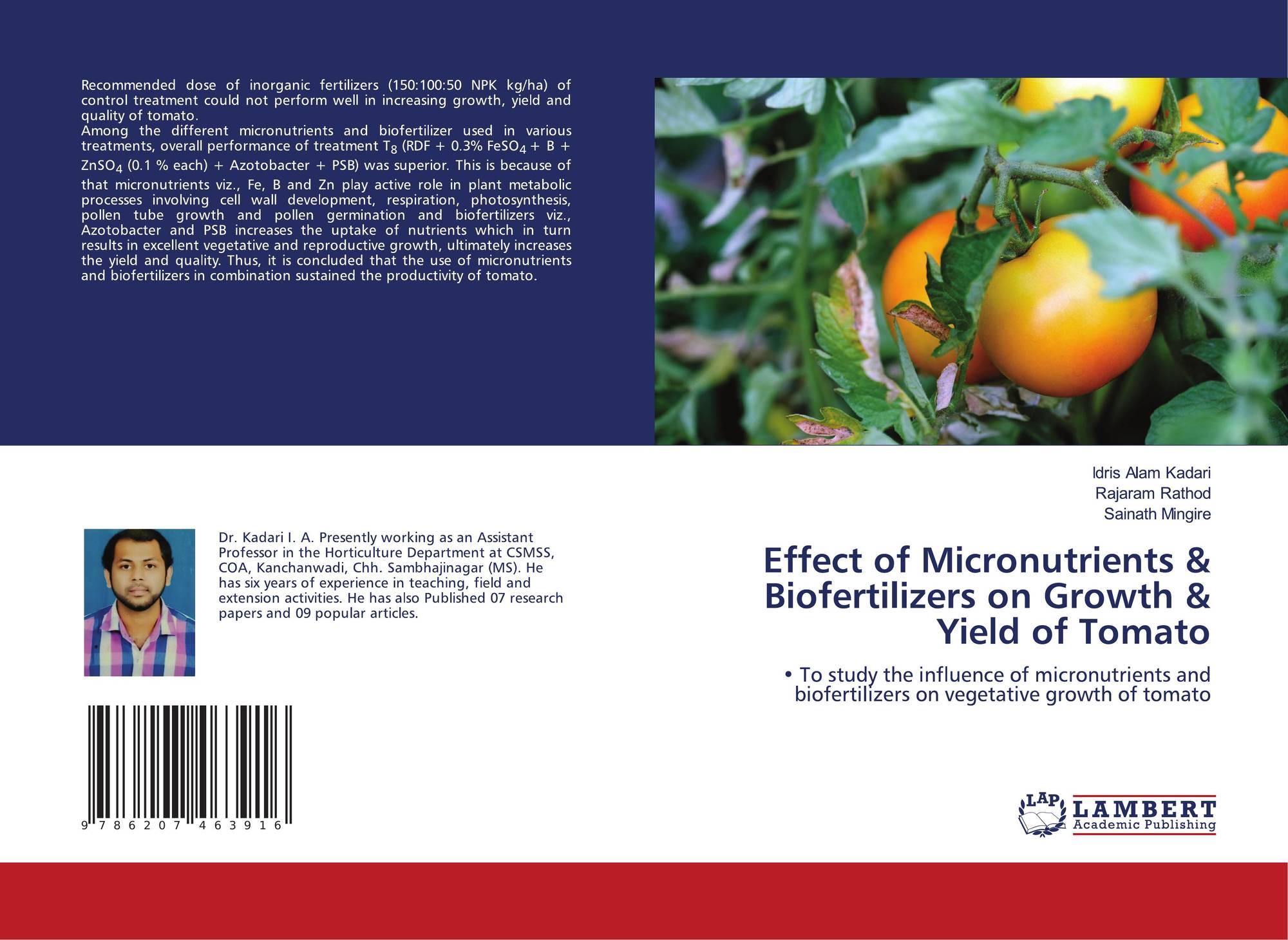 To study the influence of micronutrients and biofertilizers on vegetative growth of tomato