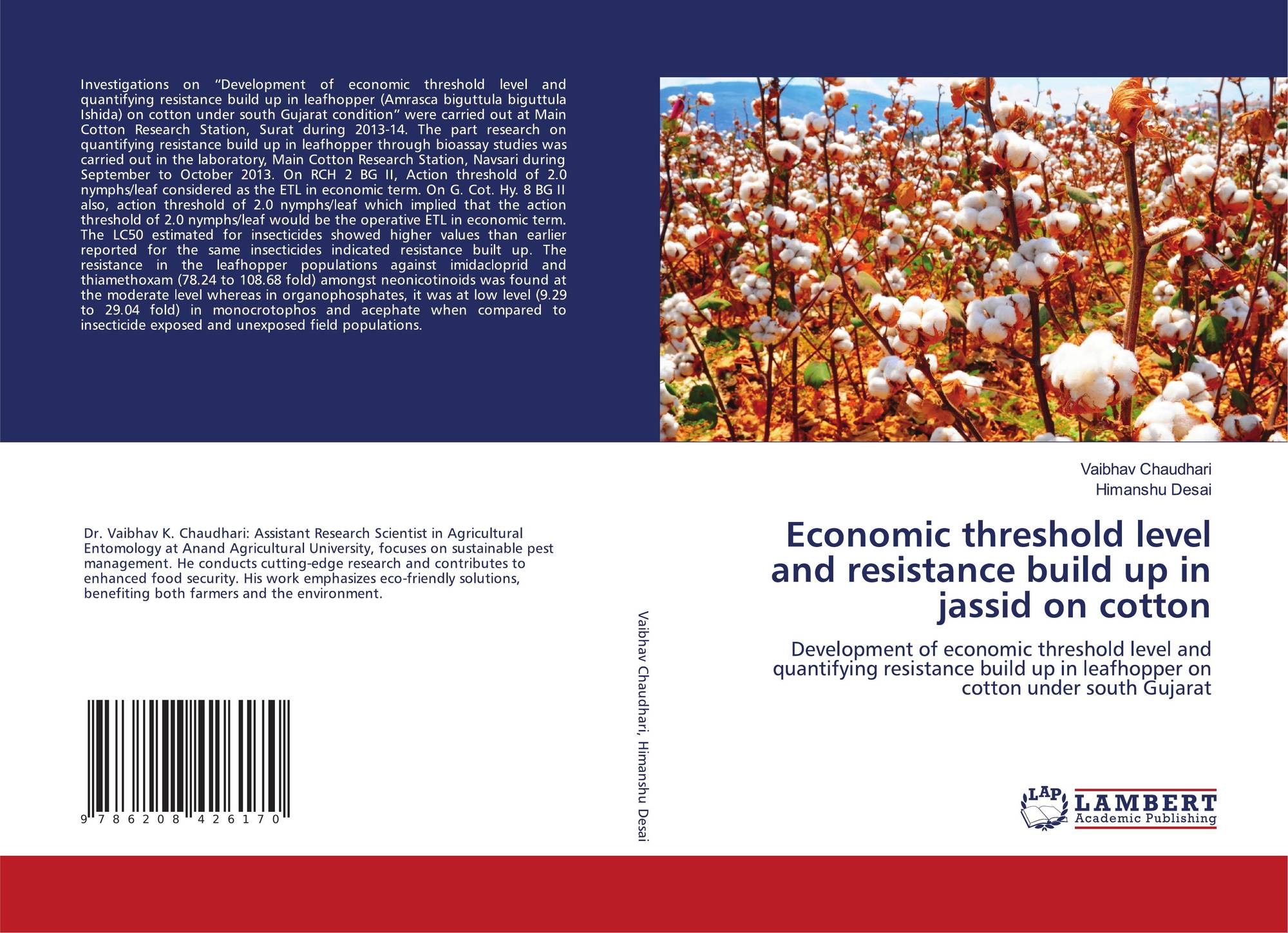Development of economic threshold level and quantifying resistance build up in leafhopper on cotton under south Gujarat