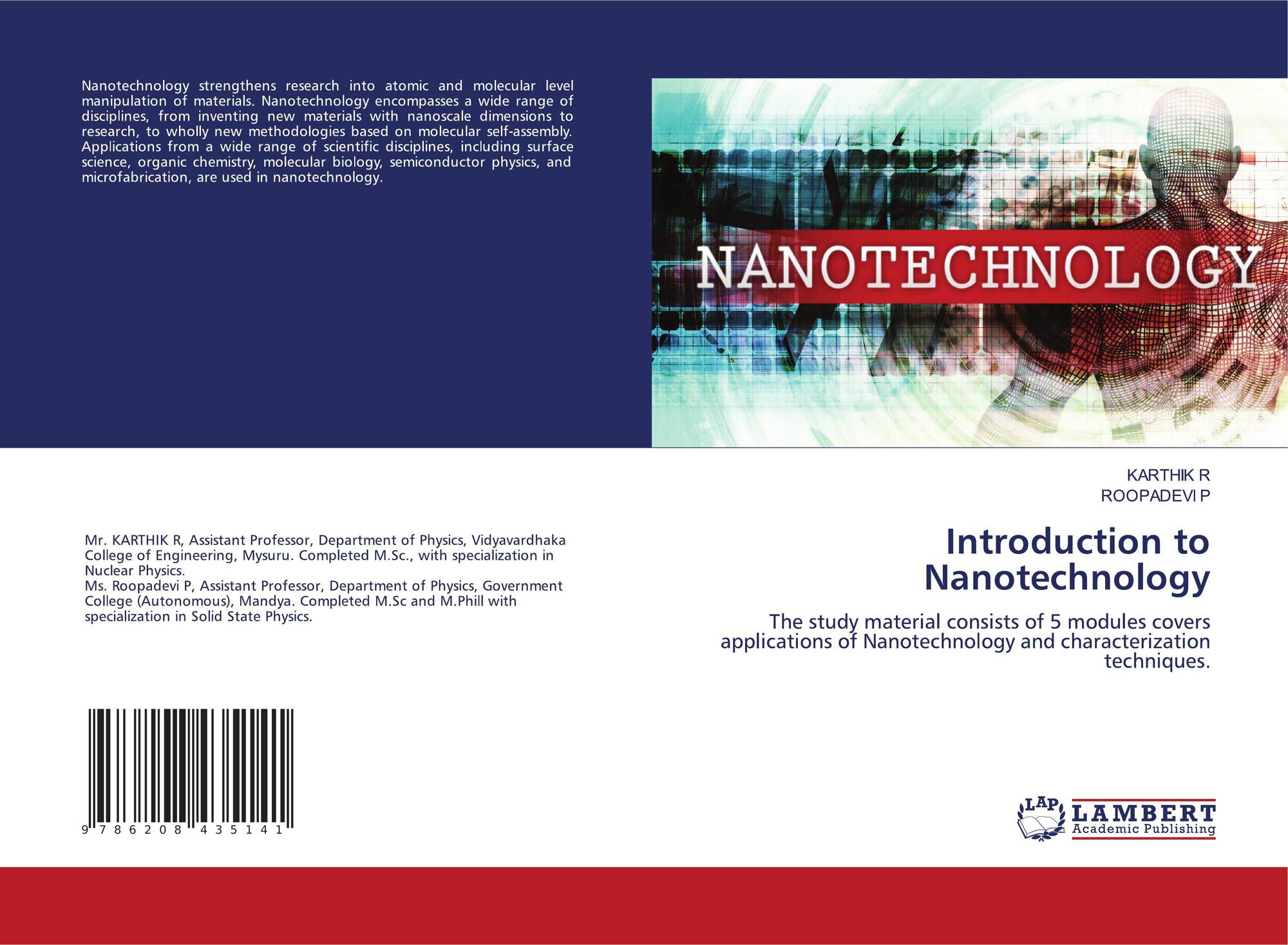 The study material consists of 5 modules covers applications of Nanotechnology and characterization techniques.