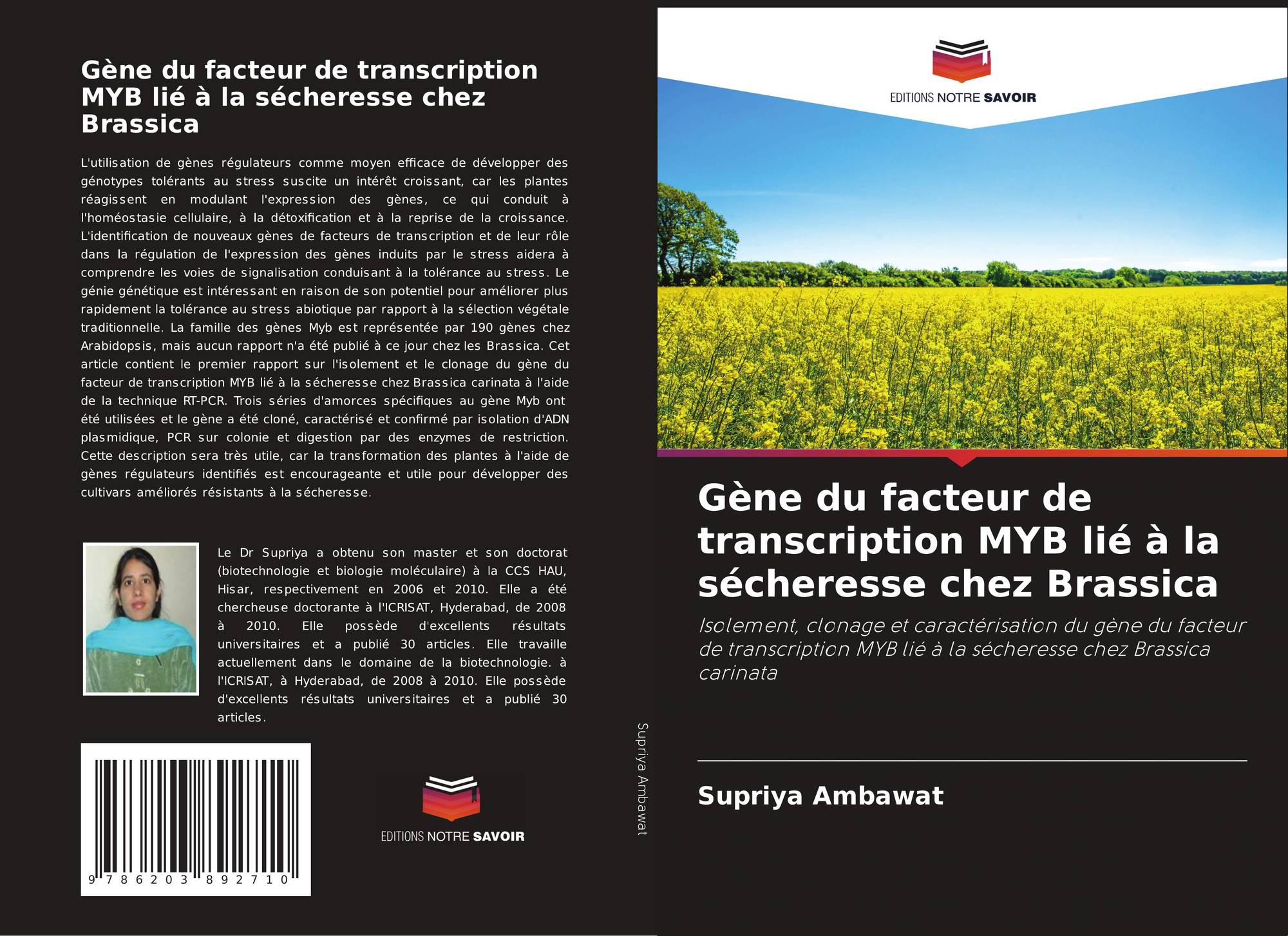 Isolement, clonage et caractérisation du gène du facteur de transcription MYB lié à la sécheresse chez Brassica carinata