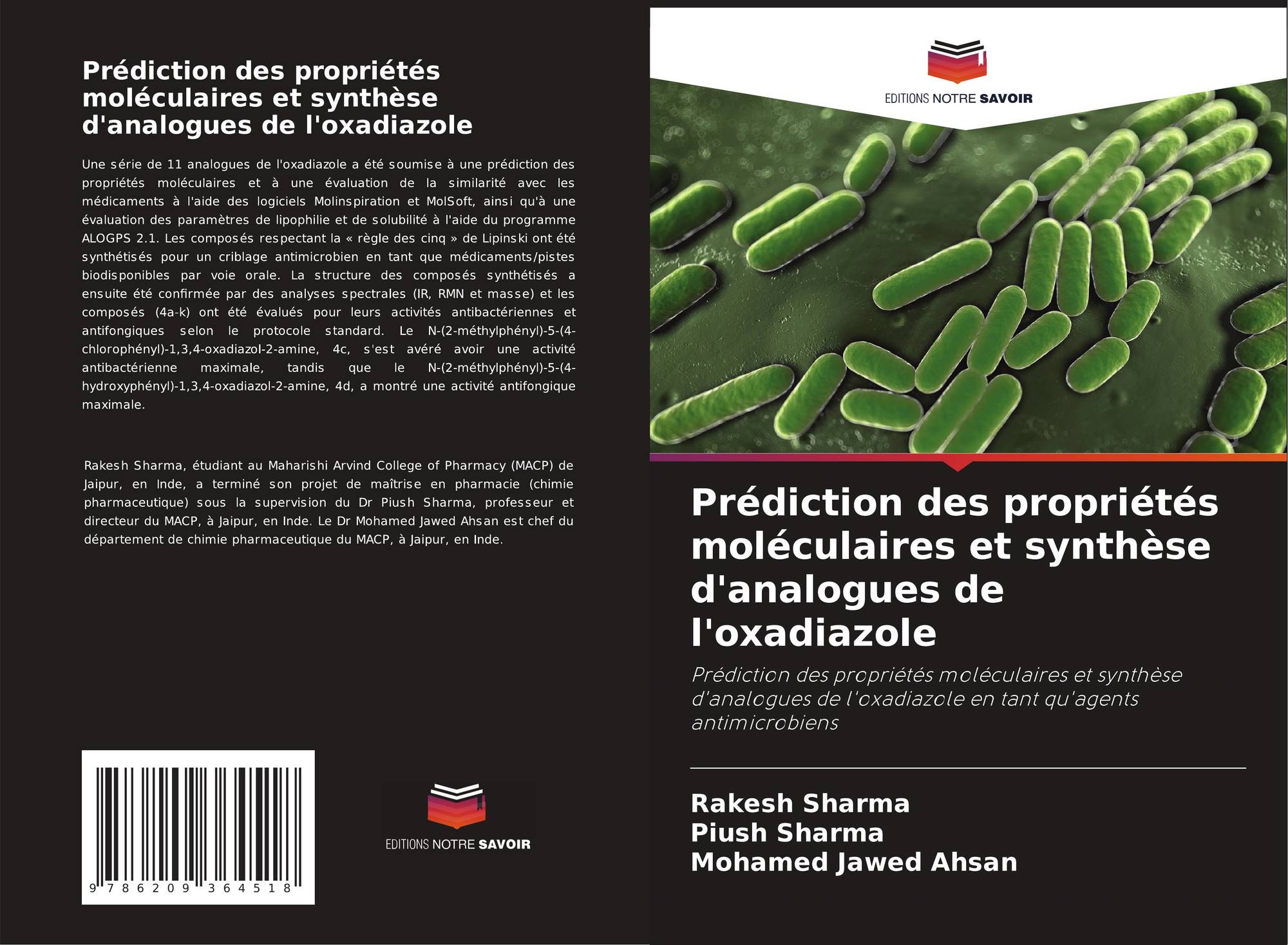 Prédiction des propriétés moléculaires et synthèse d'analogues de l'oxadiazole en tant qu'agents antimicrobiens