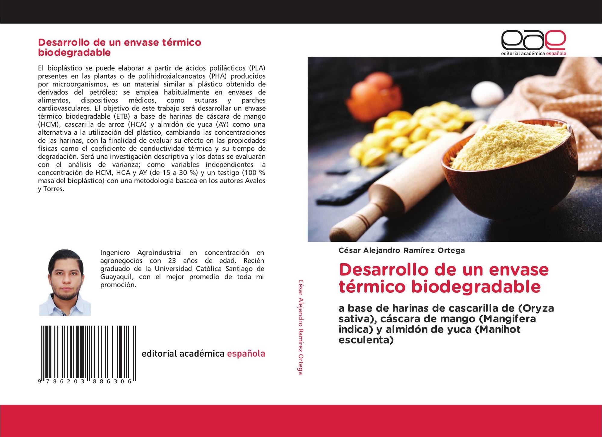 a base de harinas de cascarilla de (Oryza sativa), cáscara de mango (Mangifera indica) y almidón de yuca (Manihot esculenta)
