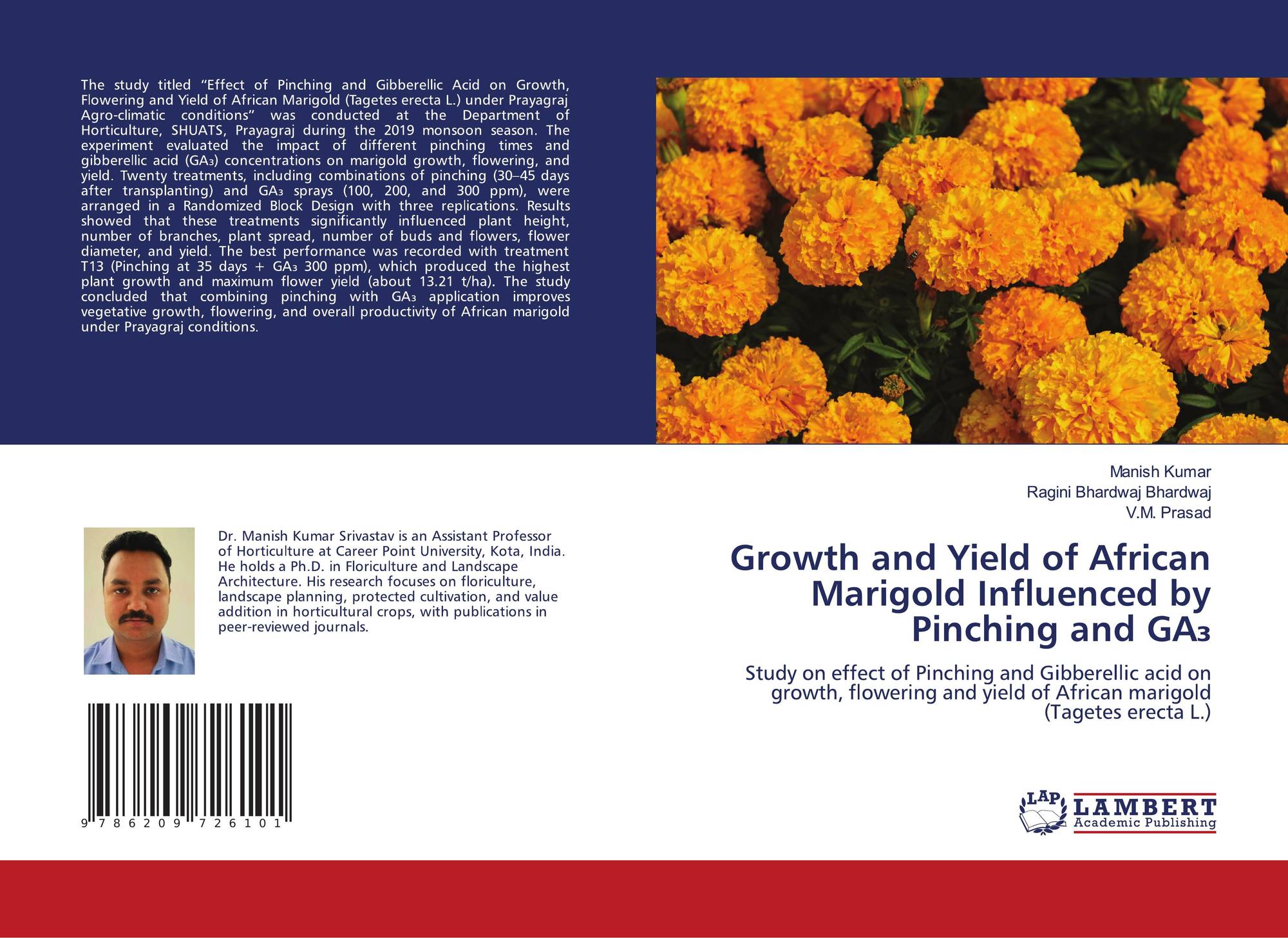 Study on effect of Pinching and Gibberellic acid on growth, flowering and yield of African marigold (Tagetes erecta L.)